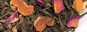 ZELENI BOŽIČNI – zeleni čaj (80%) s koščki cimeta, pomarančna lupina, klinčki, cvetovi rdeče vrtnice, naravna aroma; okus vanilije, cimeta in ruma